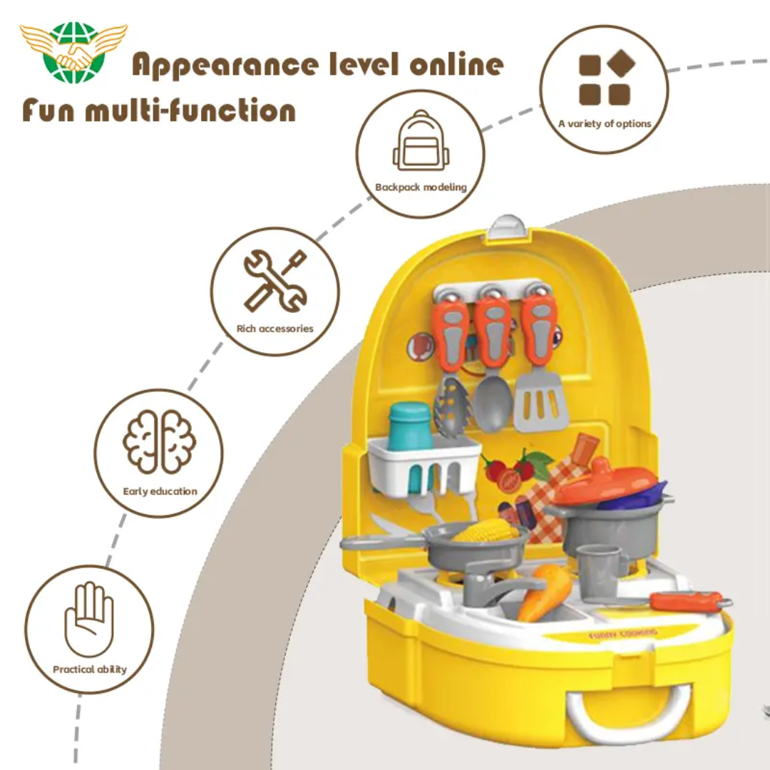 23-Pcs Kids Kitchen Playset Backpack | Educational Role-Play Kitchen/Chef Toys| Pretend Play Little Chef