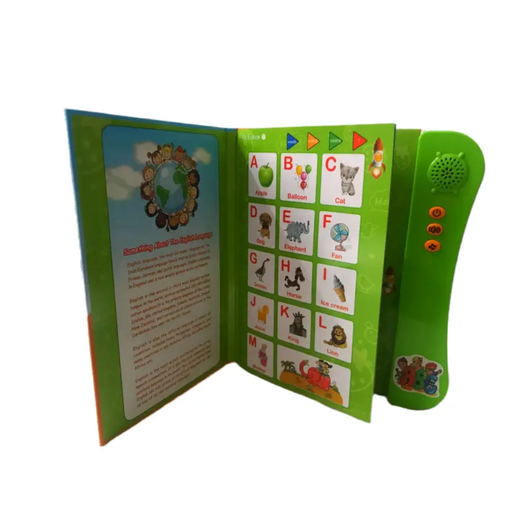 Interactive musical e-book designed to make early learning fun and engaging for kids. Features sound, music, and voice interaction to teach alphabets, numbers, words, and basic English. Helps improve listening, pronunciation, and cognitive skills through playful learning.