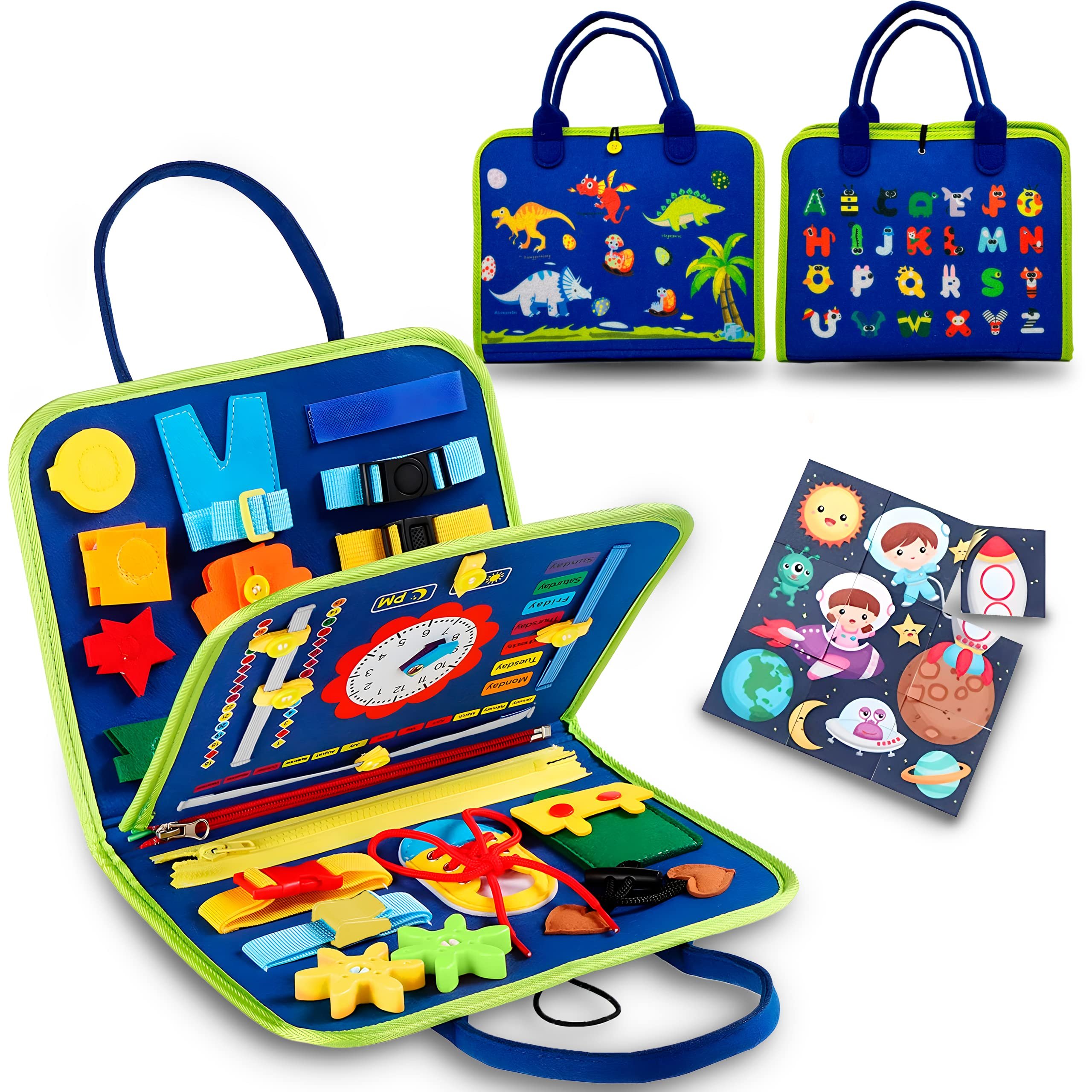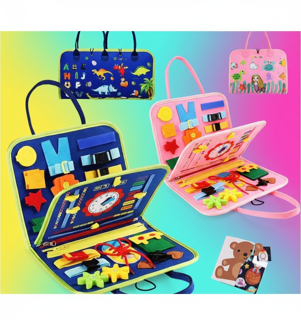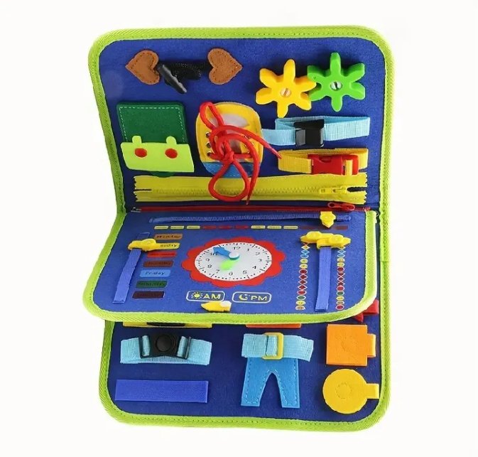 ✨ Hands-On Learning – Includes buttons, buckles, zippers, snaps, Velcro, lacing, time-telling clock, shape sorting, and puzzle activities.
